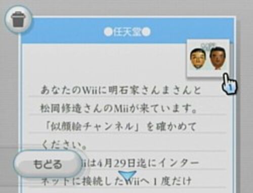 任天堂からのすてきなプレゼントは届きましたか? WiiのCMでおなじみ、明石家さんまさんと松岡修造さんのMiiが4月29日まで配信されています。 WiiConnect24をオンに設定して、ネットに繋ぐだけ。 やってくるまでに時間がかかることがあるのでそのまま…